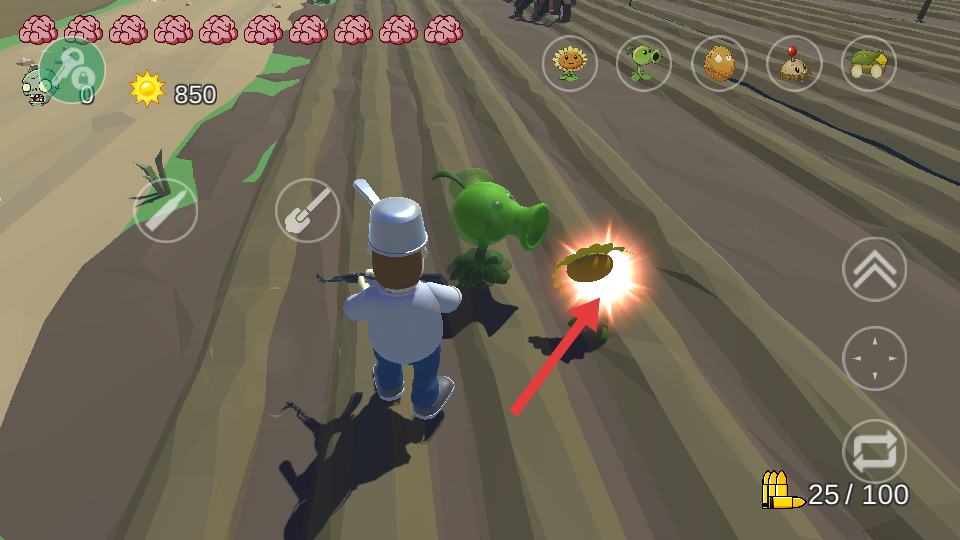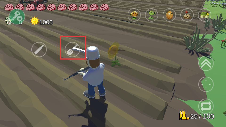 2、点击铲子按钮,进行植物种植,推进游戏进程。
