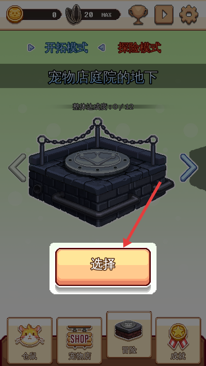 2、点击【选择】按钮,进入“宠物店庭院的地下”场景。