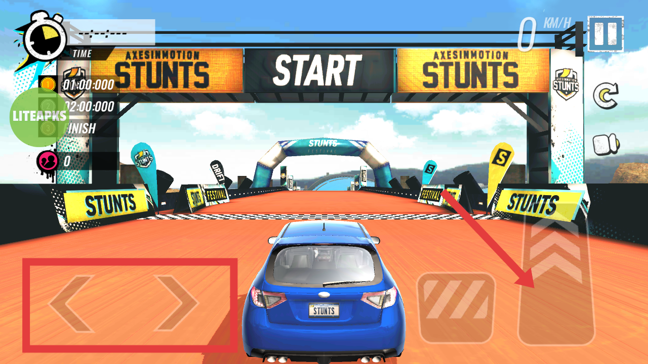 3、在赛道起点,用左右箭头控制方向,点击加速按钮前进。