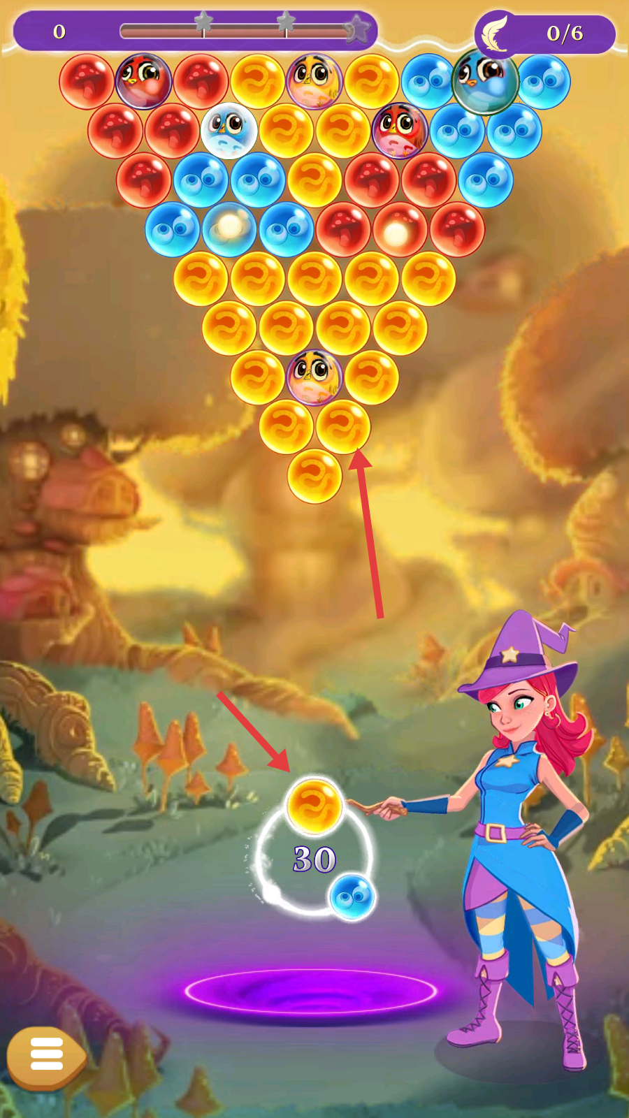 2、发射同色泡泡,消除上方的泡泡堆。