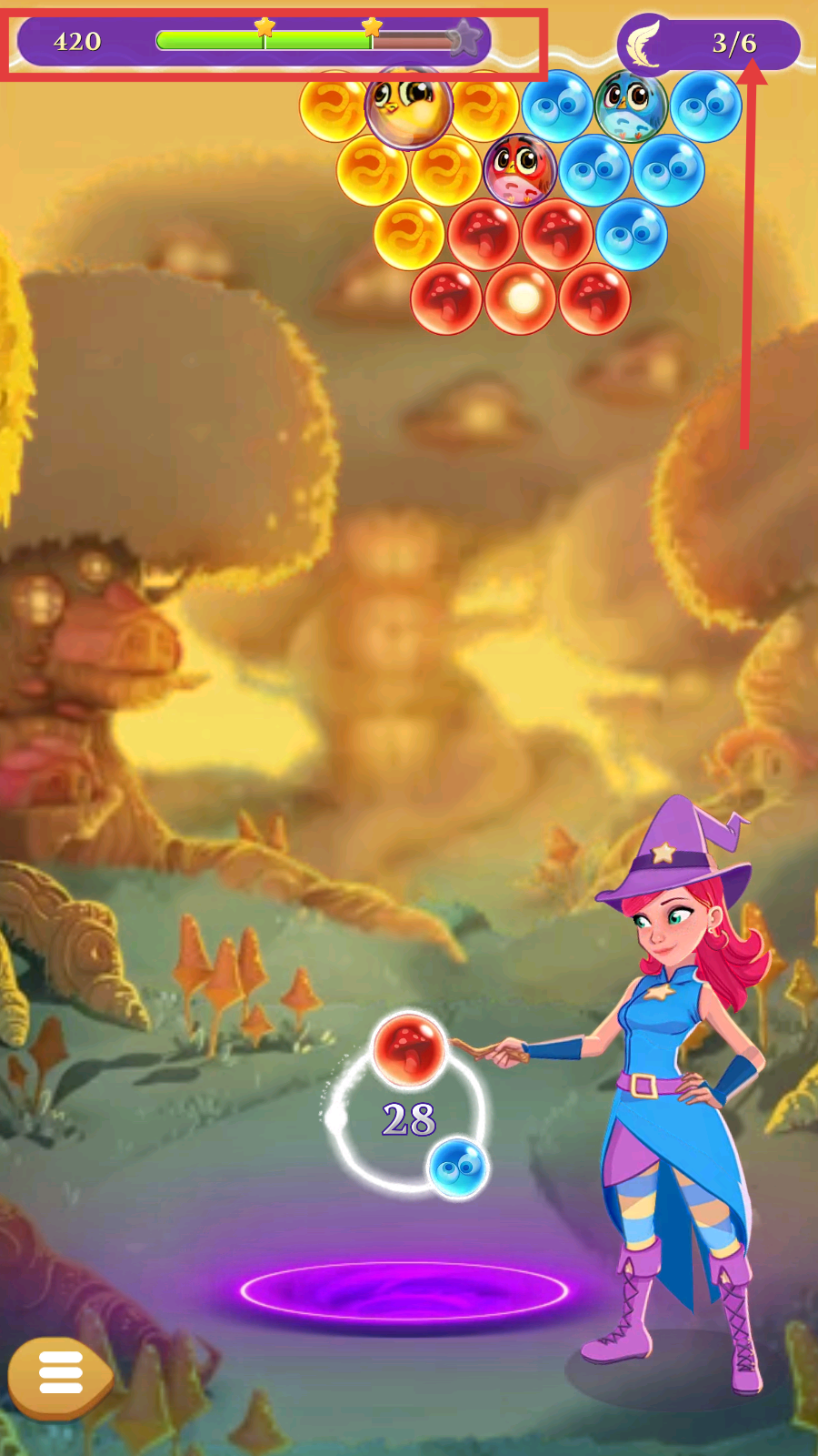 3、关注上方进度条和羽毛收集进度,消除对应泡泡。