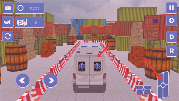 3、使用右侧操控区域控制车辆前进,避开障碍物。