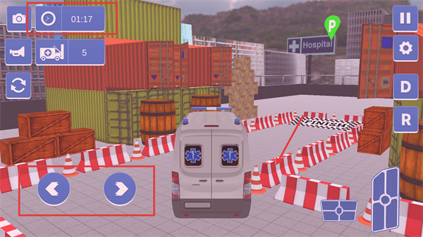 4、使用左右方向按钮控制车辆行驶,注意时间限制。