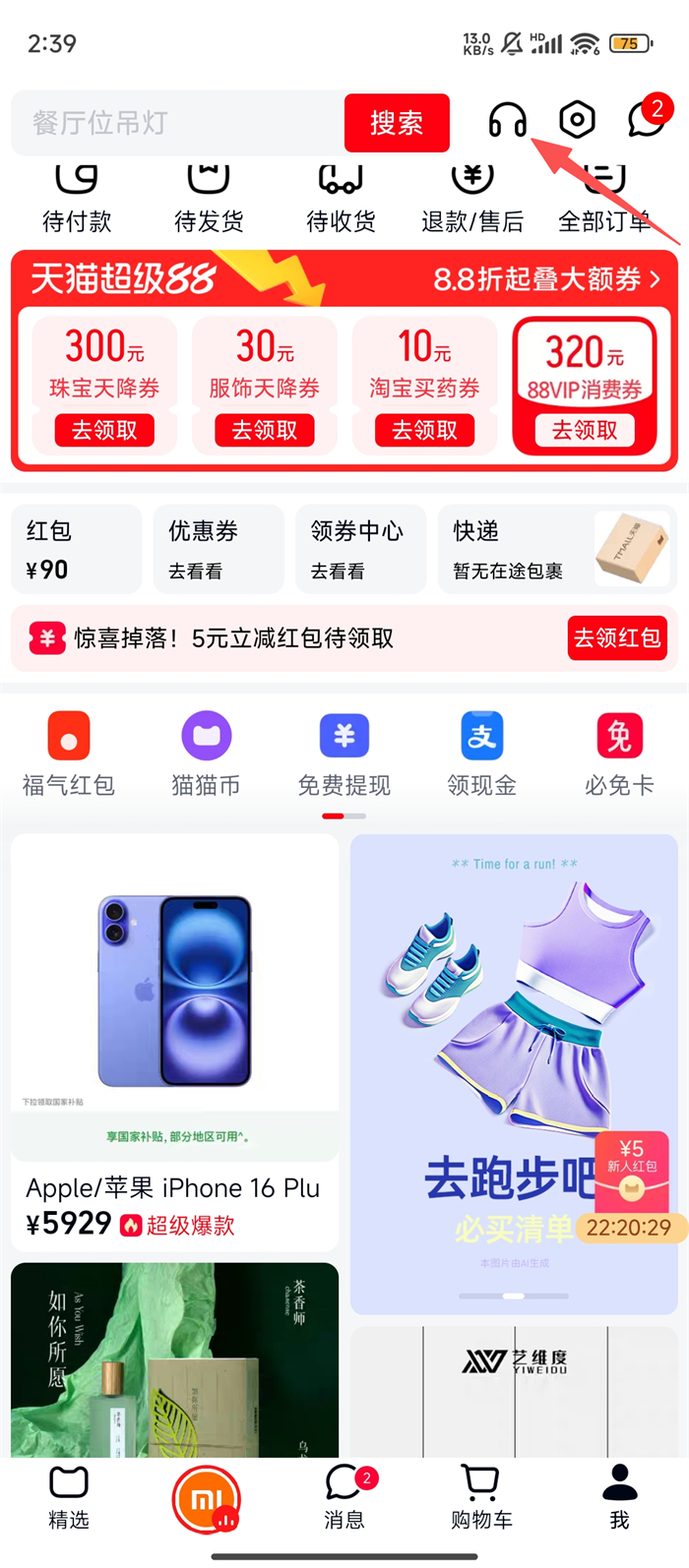 2、在【我】的页面里,找到右上角的客服图标,点击它就能进到客服界面咯。
