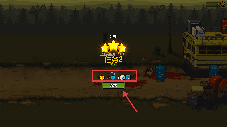 4、任务2三星完成,点击【继续】按钮领奖励,积累资源为后续任务或升级准备。