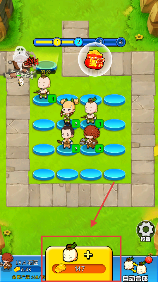 3、后续可消耗147金币招募更高等级角色,替换或补充现有队伍,提升整体战力。