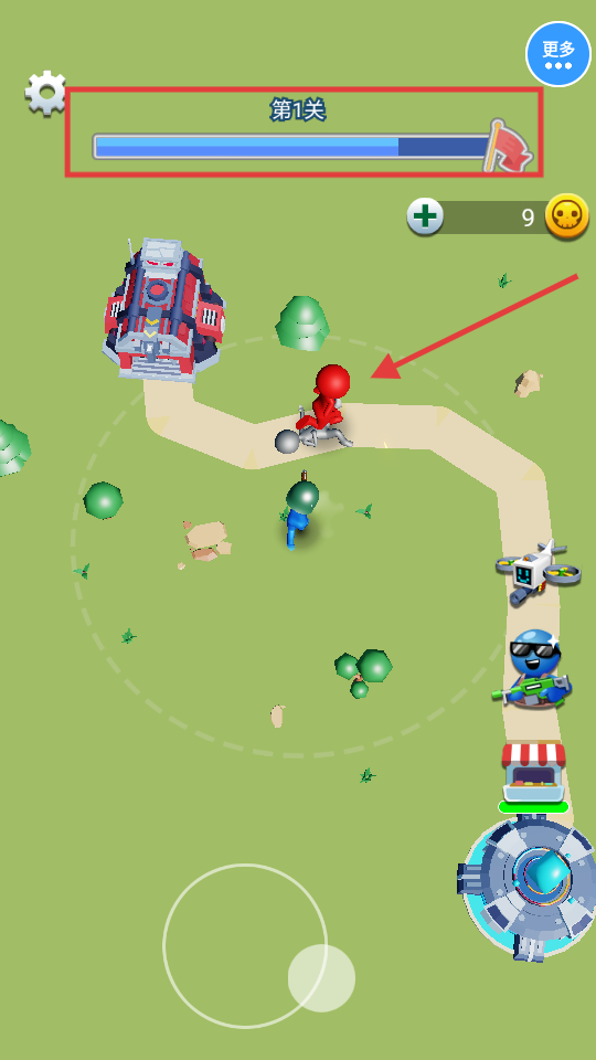 4、关注靠近的红色敌人优先攻击阻止突破防线,同时留意关卡进度条状态。