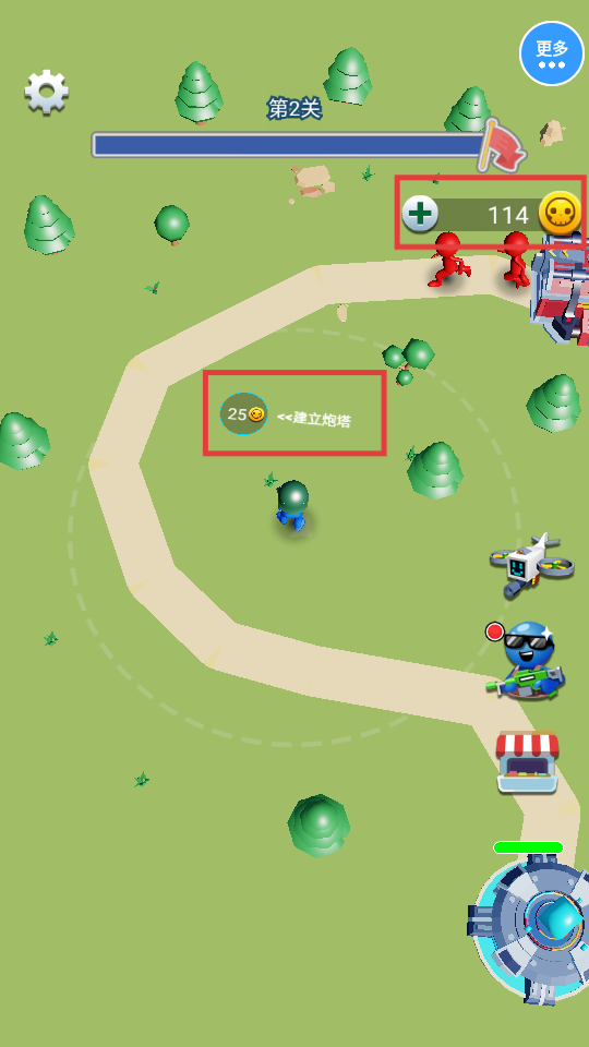 3、炮塔升级到等级2时,攻击力会提升百分之五十,速度提升百分之四十,增强防御能力。