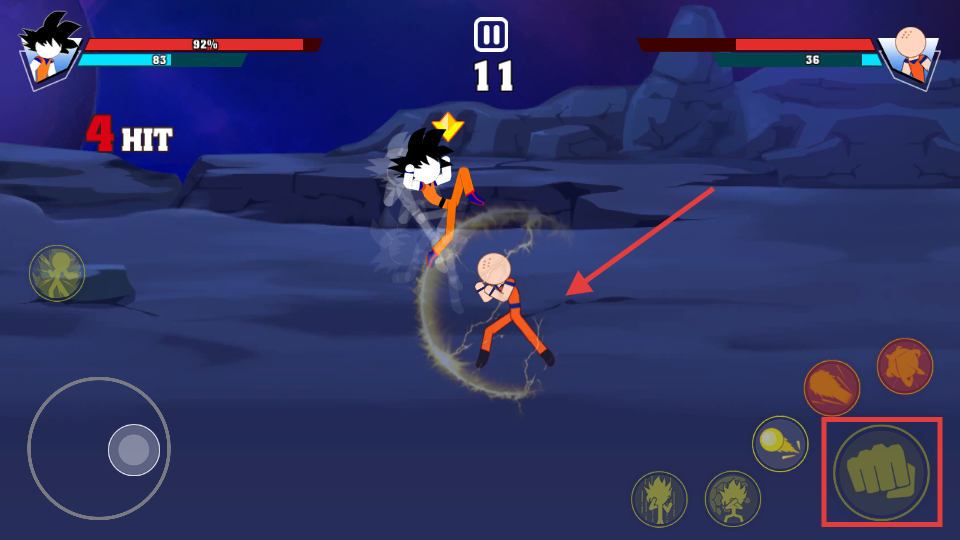 2、战斗时点击拳头按钮施展普通攻击,配合移动形成连击,持续压制敌人积累伤害。