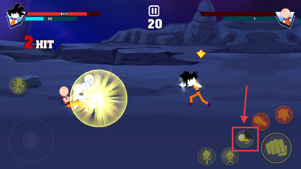3、在敌人破绽时点击能量波技能按钮,打出爆发伤害,尝试以此终结敌人拿星。