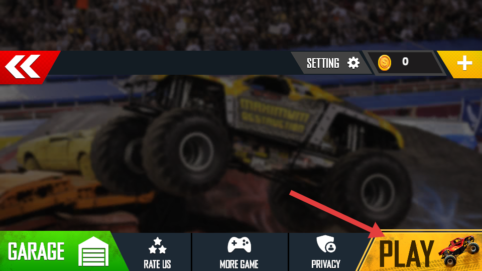 1、点击【PLAY】,进入游戏驾驶怪兽卡车。