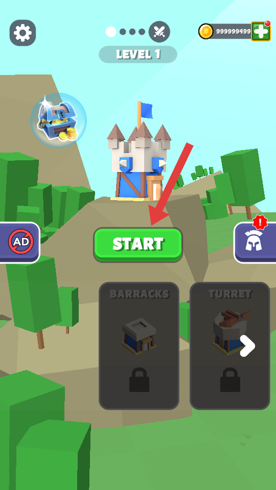 1、在游戏初始界面,看到【LEVEL-1】标识后,点击【START】按钮,开启城堡争夺关卡。