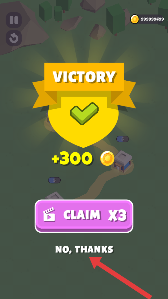 4、成功占领所有阵营后,出现【VICTORY】提示后,点击【NO,THANKS】,准备挑战下一关。