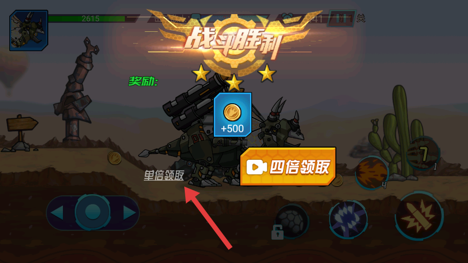 4、关卡胜利后,可选择【单倍领取】获得金币奖励,继续挑战后续关卡。