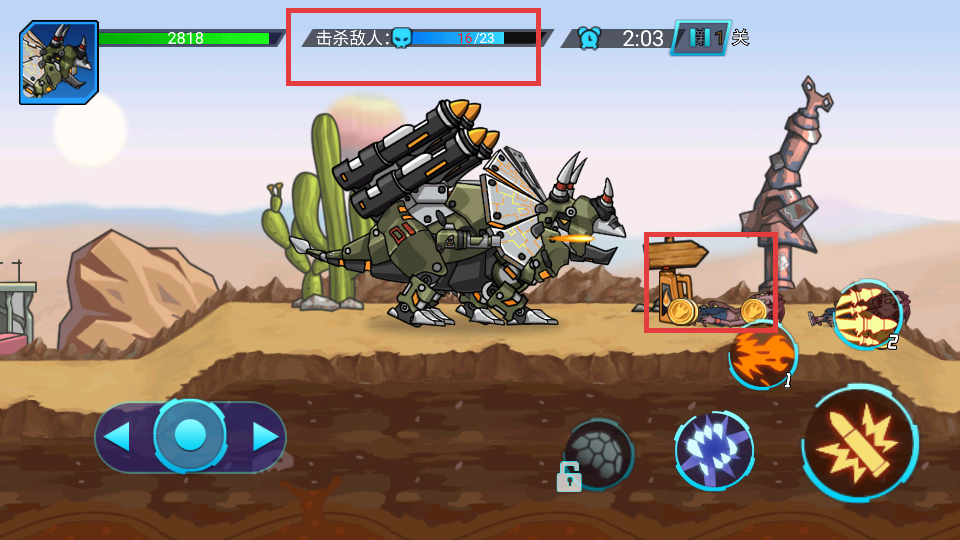 3、关注击杀敌人的进度,同时收集场景中的金币,持续推进关卡进程。