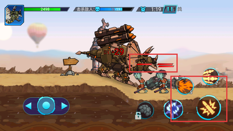 2、使用右侧的技能如火焰、导弹类技能攻击敌人,快速降低敌人的生命值。