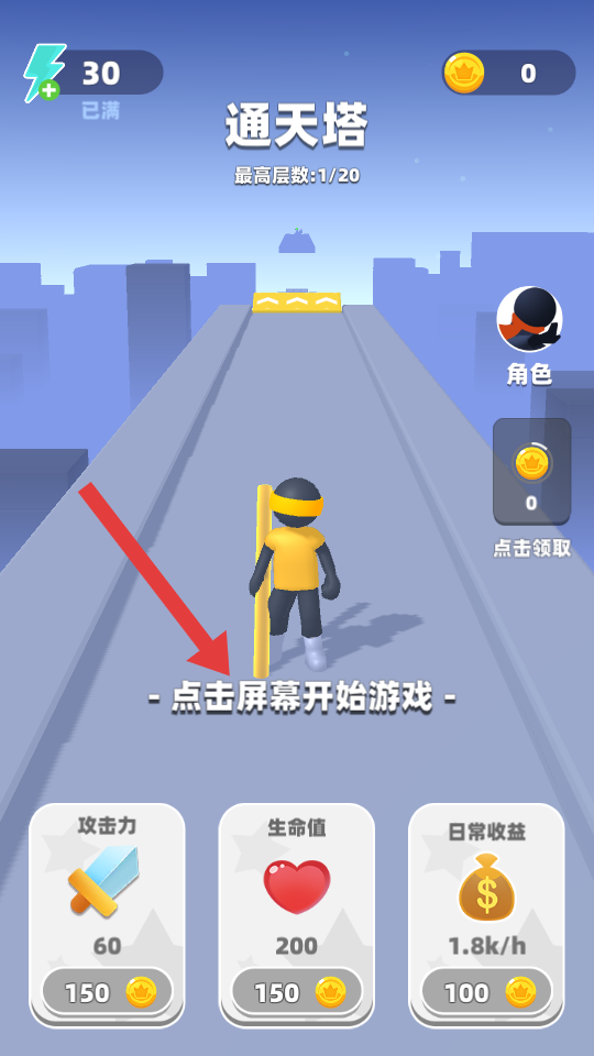 1、在游戏主界面,点击屏幕上【点击屏幕开始游戏】按钮开启游戏。