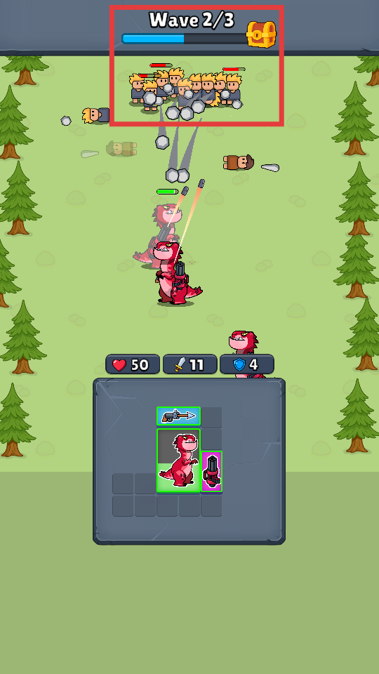 4、观察红框内【敌人波次】情况并应对,将敌人全部消灭即可通关。