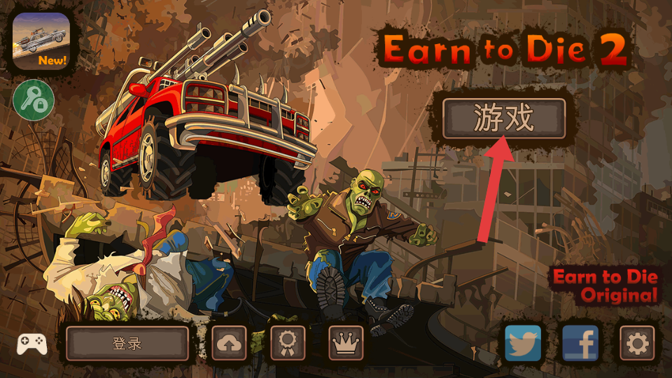 1、在游戏主界面,点击【游戏】按钮,进入战车撞僵尸2的游戏关卡。