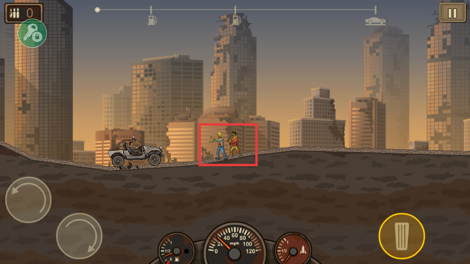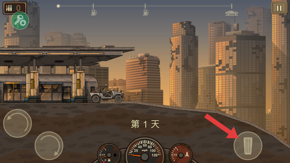 2、进入关卡后,利用屏幕左下角的【方向按钮】操控战车翘头压头,通过右下角【油门】按钮进行加速。