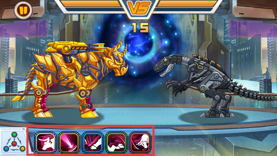 2、进入战斗后,选择下方的技能按钮,瞄准敌方机甲发起进攻,释放技能造成伤害。