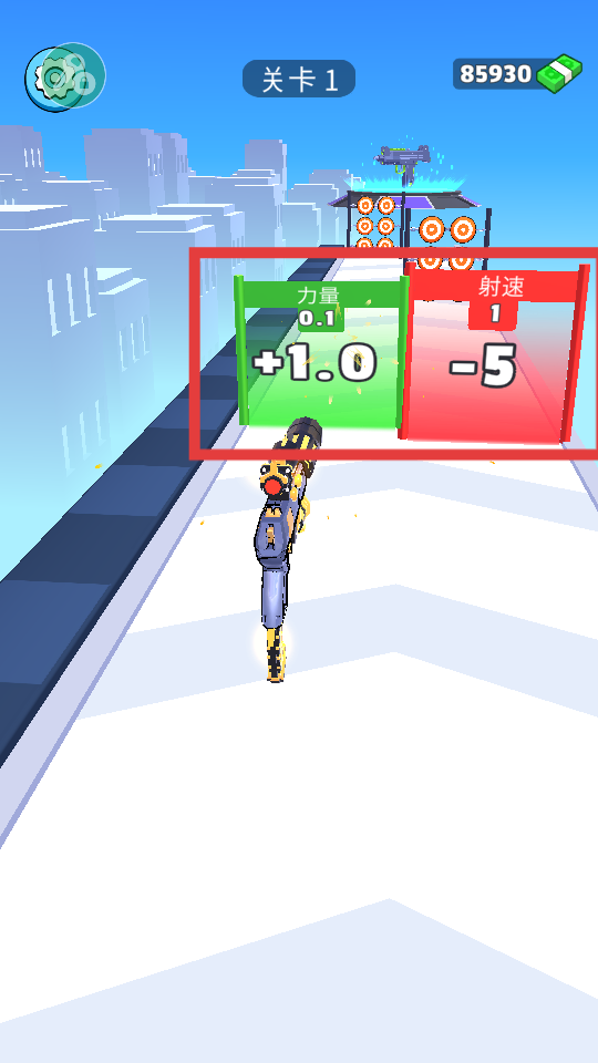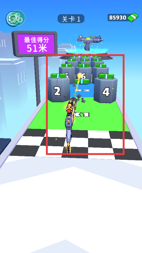 3、冲刺到终点时,集中射击带有金币的障碍物,借助免广告优势快速获取金币奖励。