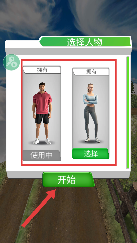1、在【选择人物】界面,可切换不同角色,选好后点击【开始】按钮进入游戏,利用内置菜单可自由选择心仪角色。