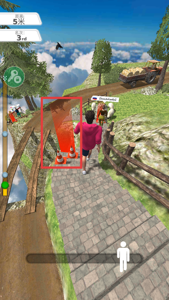 2、跑步时避开红色区域和路障,借助内置菜单的优势,保持在安全路径上前进,提升名次和奔跑距离。