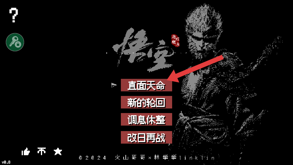 1、进入游戏后,选择【直面天命】开始挑战,利用内置菜单功能开启像素风格的黑神话冒险。