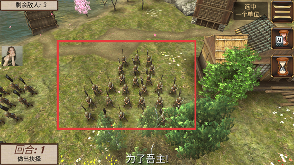 1、在战斗开始时,选中己方部队,如红色框内的士兵单位,准备进行战术部署。