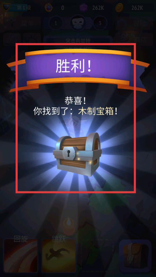 4、成功完成关卡任务后,会弹出奖励界面,获取如【木制宝箱】等奖励,然后继续挑战后续关卡。