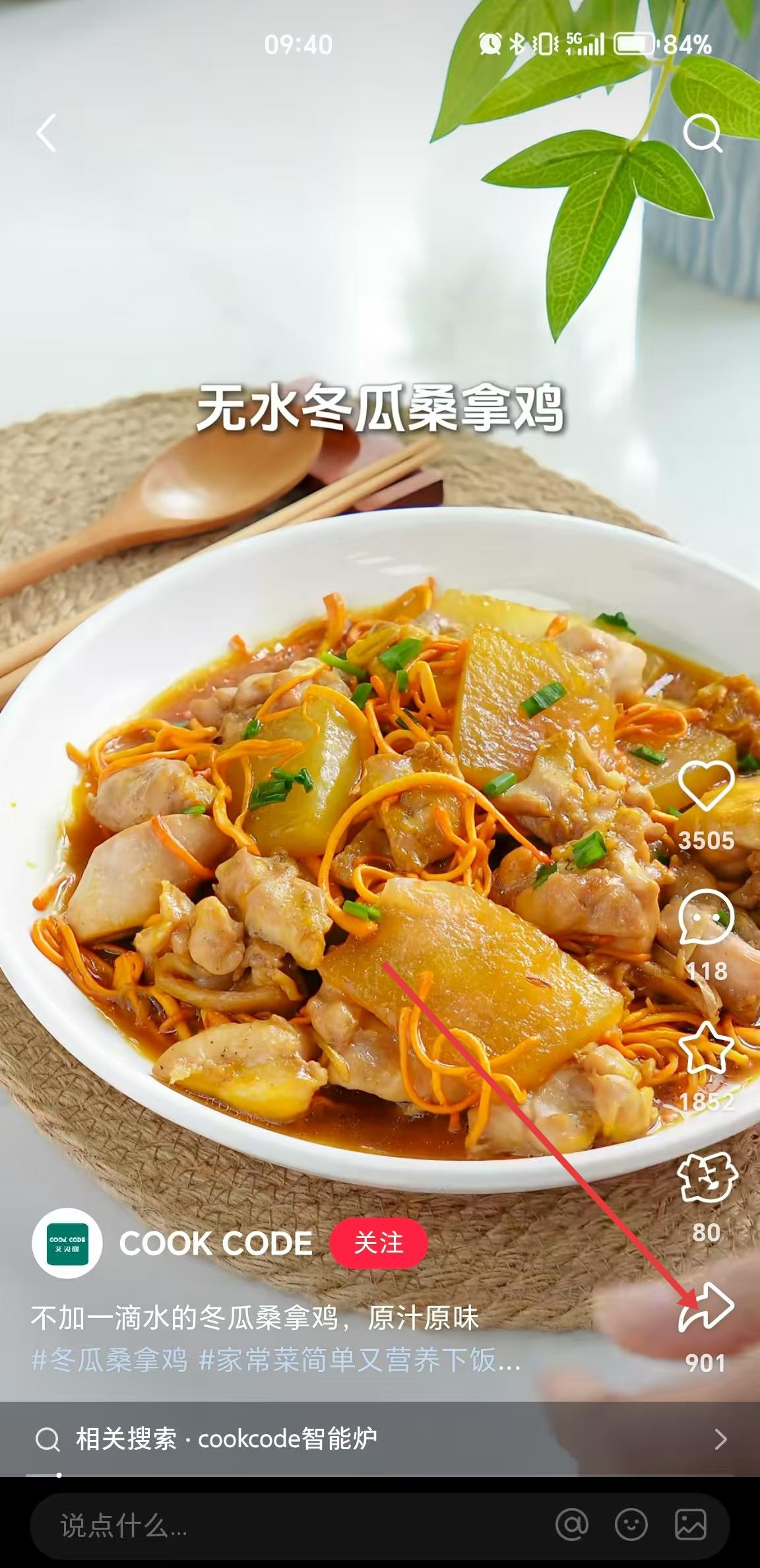 2、在美食分类里,看到喜欢的美食视频,比如【不加一滴水的冬瓜桑拿鸡】,点击就能进入视频详情页哦。