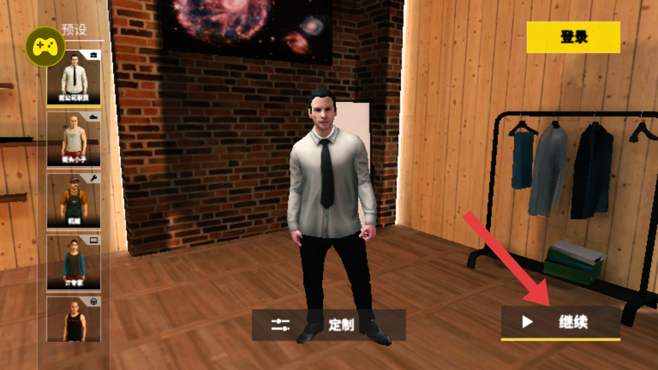 1、选择角色后点击【继续】,进入游戏,利用内置MOD菜单功能开启停车挑战。