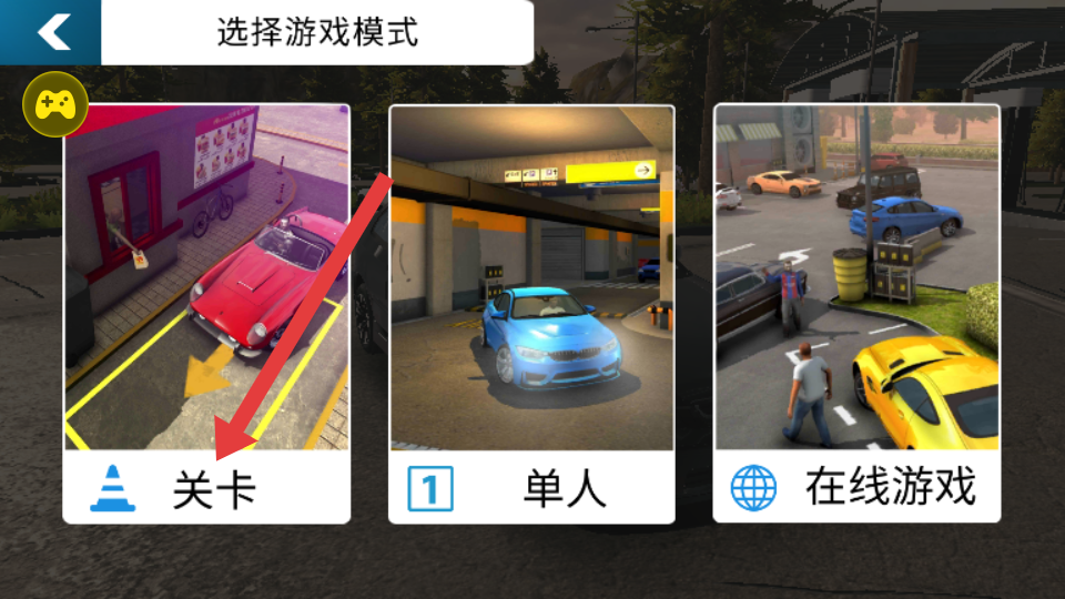 2、在游戏模式选择界面,点击【关卡】,进入内置MOD菜单支持的关卡模式,开始停车任务。