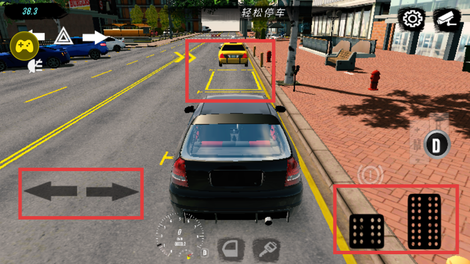 3、借助内置MOD菜单,通过左侧方向按钮和右侧油门刹车按钮,精准操控车辆驶入指定车位,完成停车。