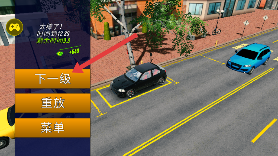 4、成功停车后,点击【下一级】,利用内置MOD菜单的优势,挑战更高难度的停车关卡,不断提升停车技巧。