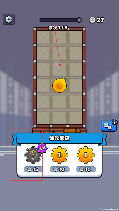 1、在【齿轮商店】,可花费货币购买齿轮,像试用齿轮需15货币,还有10货币的齿轮,提升防御能力。
