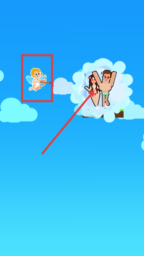 1、根据提示【Swipe-your-finger】,滑动手指操控丘比特,瞄准男女角色,射出爱箭,尝试让他们配对。