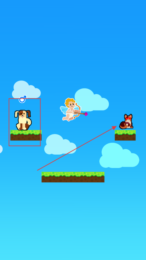 3、面对不同的动物角色,同样操控丘比特,瞄准对应动物,发射爱箭,让它们也能成功配对,积累经验。