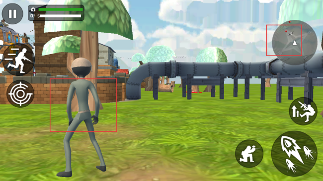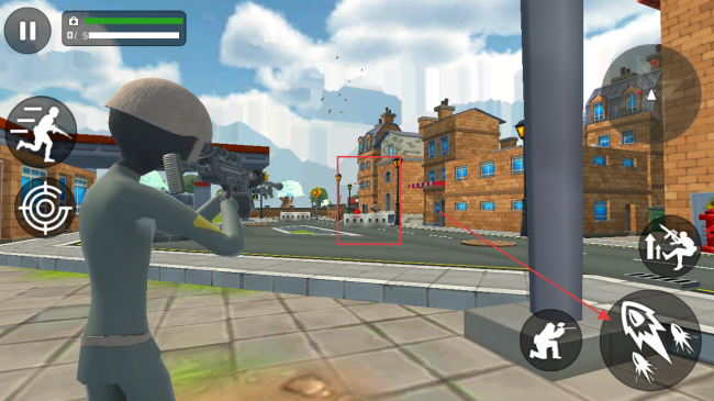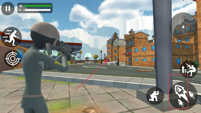 3、拾取武器后,瞄准远处目标,可点击右侧的火箭弹按钮,发射火箭弹对目标区域造成大范围伤害。