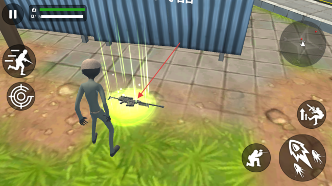2、在场景中寻找武器,看到带有黄色光芒的枪械时,靠近拾取,获取更强的战斗能力,提升作战效率。