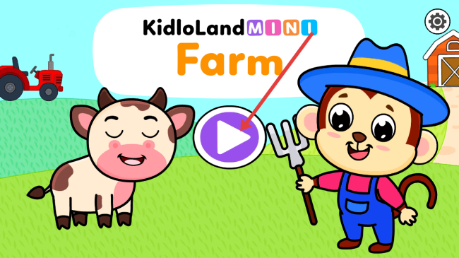 1、游戏初始界面,点击紫色圆形播放按钮,进入《KidloLand-MINI-Farm》,开启农场种植体验。