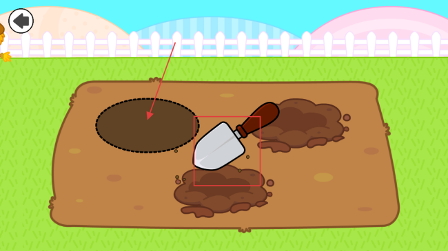2、进入种植环节,使用铲子,在土地上挖出合适的坑洞,为后续播种做准备。