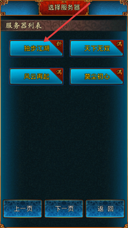1、进入游戏,选择【独步江湖】服务器,该服务器为新服,适合新手开启游戏征程。