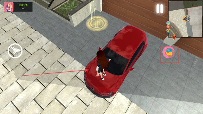 2、靠近红色汽车,利用右侧交互标识,与汽车进行互动,可能会触发驾驶等相关游戏环节。