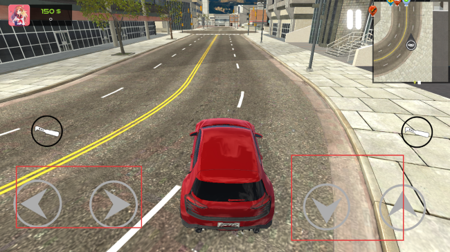 3、驾驶汽车时,通过左右方向键控制行驶方向,下方按键可控制车速,在道路上平稳驾驶,注意路况。