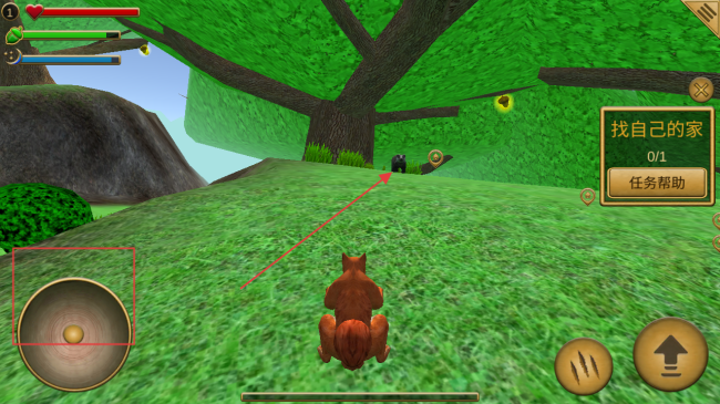 3、接到【找自己的家】任务后,操控松鼠在场景中移动探索,留意周围环境,寻找家的位置。