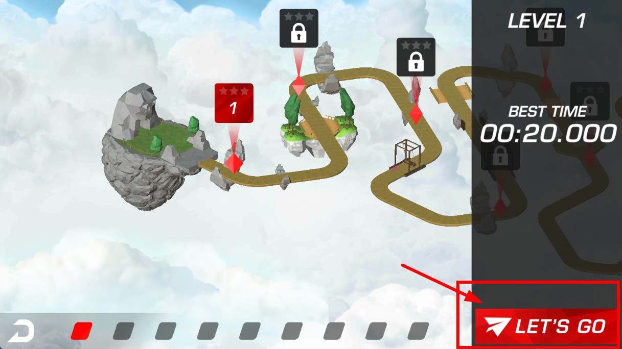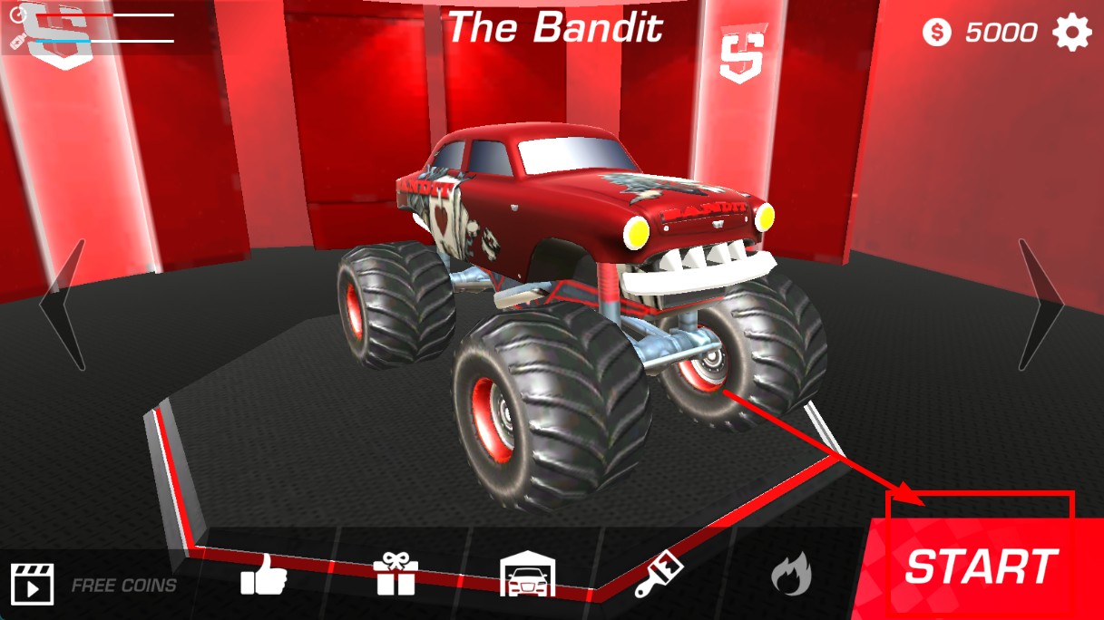 2、在关卡准备页,点【LET'S-GO】,驾驶红色怪物卡车,开启赛道挑战。