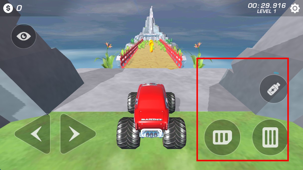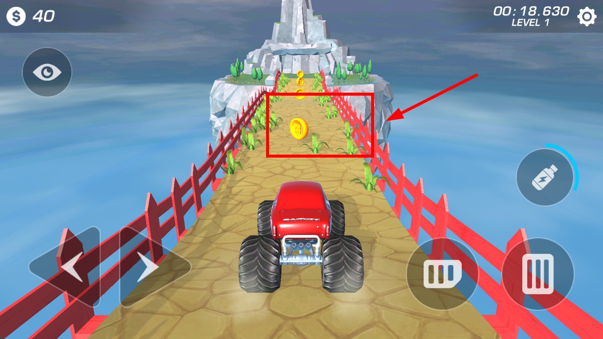 3、用右侧加速、氮气等按钮,操控卡车加速,收集赛道上的金币。