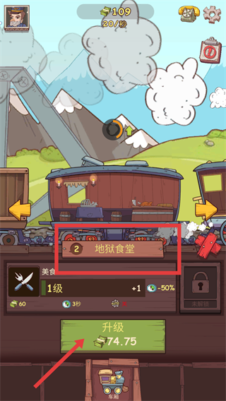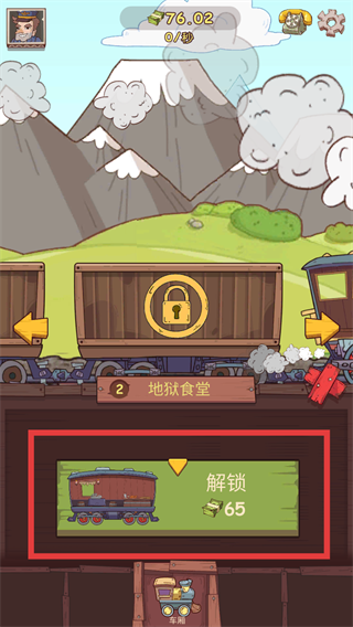 3、当资源足够时,点击“解锁”,花费对应钞票解锁新的车厢(如“地狱食堂”车厢)。